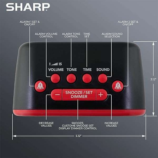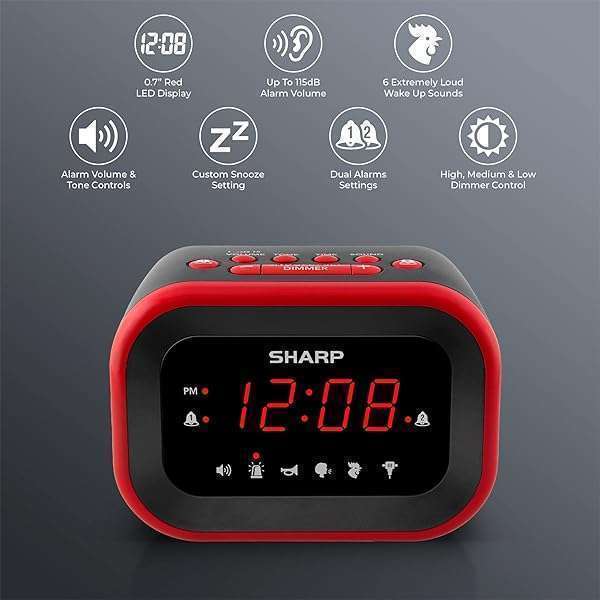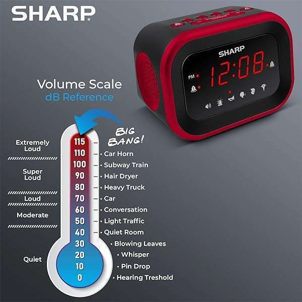 - Sharp Big Bang Super Loud Alarm Clock for Heavy Sleepers, 6 Extremely Loud Wake Up Sounds: Rooster, Bugle, Nagging Mom, Jackhammer, Siren, Beep Up to 115db Volume, Red/Black with Red LED Display p...- Extra Loud Alarm Clock - The Sharp Big Bang is the loudest alarm clock for kids of all ages. The up to 115db extremely loud alarm clock allows you to adjust the volume AND tone of the alarm sounds ...