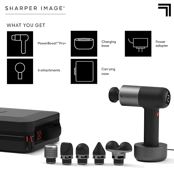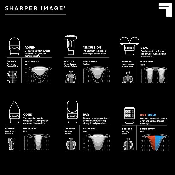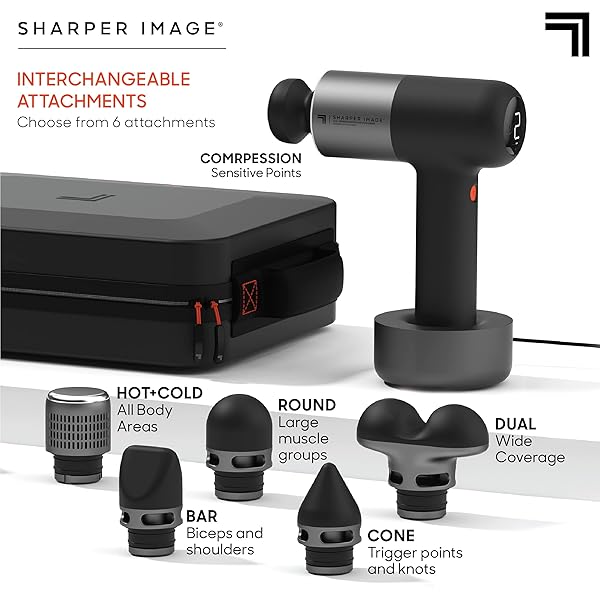 - Sharper Image Deep Tissue Percussion Massage Gun, Powerboost Pro+ Hot & Cold Rechargeable Handheld Massager, 6 Adjustable Speeds, 6 Attachment Heads & Carrying Case, Muscle Pain Relief, Black: reliable performance and quality- Dual-Temperature Deep Tissue Massage: Switch between- 6 Interchangeable Attachments: This massage tool- Whisper-Quiet Brushless Motor: Equipped with- 6 Adjustable Speed Levels: Choose from 6 intensity