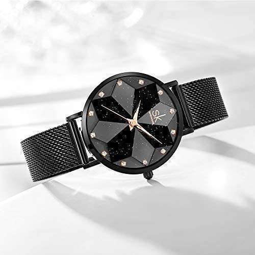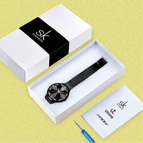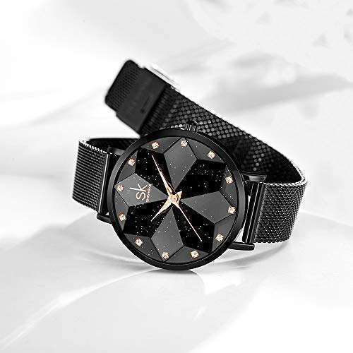 - SHENGKE Creative Starry Sky Women Watch with Stainless Steel Mesh Band Genuine Leather Elegant Women Watches (Starry-Mesh Band-Black) provides reliable performance and quality- Luxury Simple Design: Real Ultra-Thin Case Thickness Reach 5.5MM, With Vacuum Ion Plating,Not Easy To Discolor- Creative Unique Dial Design:Starry Sky Dial,Flower Dial,Minimalist Shell Dial,There Will Be One Option Fits You