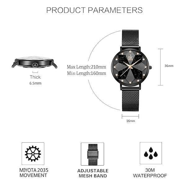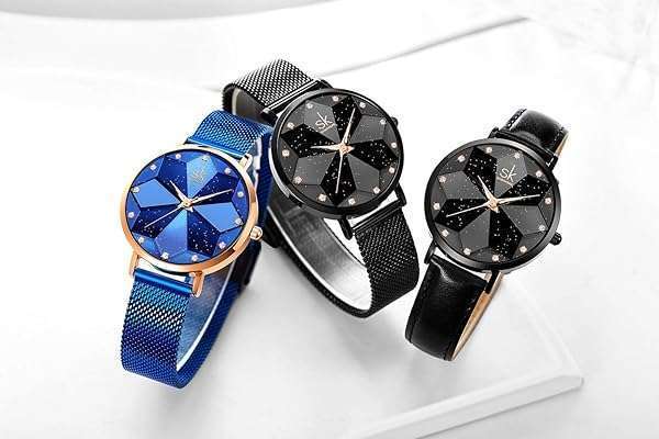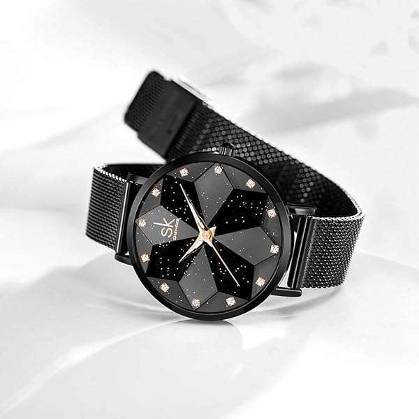 - SK Creative Design Starry Star Women Watch with Genuine Leather Stainless Steel Mesh Band (Starry-MESH Band-Black) provides reliable performance and quality- Creative Unique Starry Design:the dial evokes a vast galaxy, adorned with 12 diamond indexes like stars and a multi-faceted diamond-cut glass, as if wearing the entire night sky on your wrist