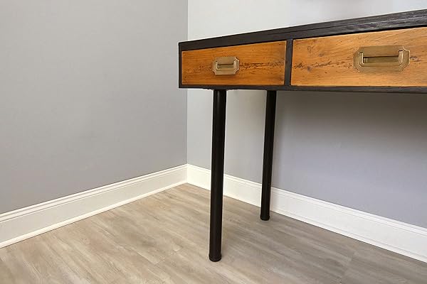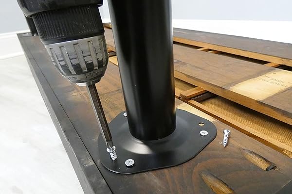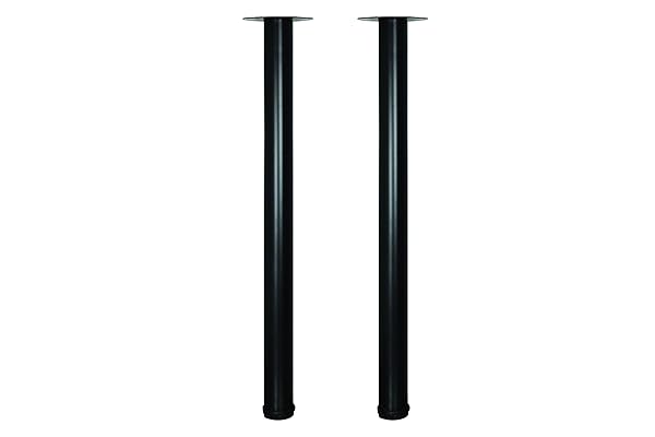 * Shepherd Hardware 8570E 27-1/2-Inch Fixed Steel Furniture Legs for Desks and Tables, Black - 2-Pack: desk-height table legs are sturdy and stylish with powder-coated finish and pre-drilled plate mounts * Fingertip adjustability at the floor for stress-free leveling on carpet or hard surface floors * Construct a desk or table from odd or traditional flat top materials and simply unscrew the legs for storage or relocation * 2-Inch diameter tubular steel table legs * Black 27-1/2-Inch to 28-Inch
