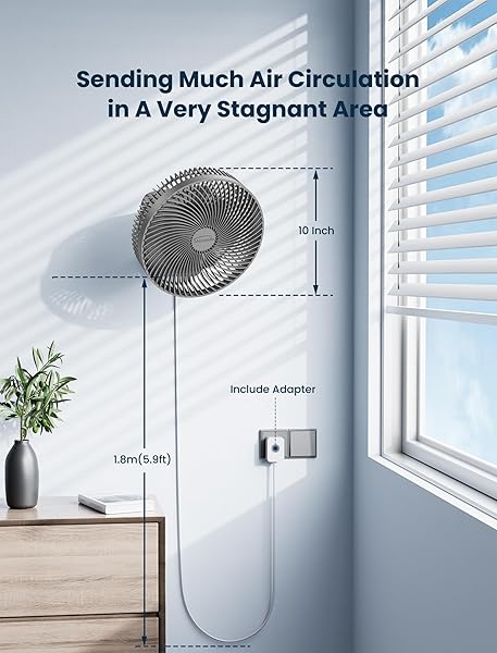 - Shinebella 10-Inch Wall Mount Oscillating Fan with Remote and Timer, Small Bedroom RV Fan with 4-Speed, Quiet Operation,90Oscillation, Adjustable Tilt,5.92 ft Wire, for Cooling Bathroom Home Garage with reliable performance and quality- WIDE AREA COOLING:This oscillating wall-mounted fan provides a wide range of motion for air circulation. It makes a 90-degree self-turn and a 60-degree manual swing. Sending much air circulation in a very stagnant area- 10-INCH 4 SPEED OPTIO