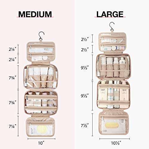 * BAGSMART Toiletry Bag Hanging Travel Makeup Organizer with TSA Approved Transparent Cosmetic Bag Makeup Bag for Full Sized Toiletries, Medium-Pink: : medium size: rolled * 11'' x 3.7" x 7.9" * Opened * 9.5'' x 4" x 26.5 * Large size :Rolled: 12.2'' x 4" x 9"