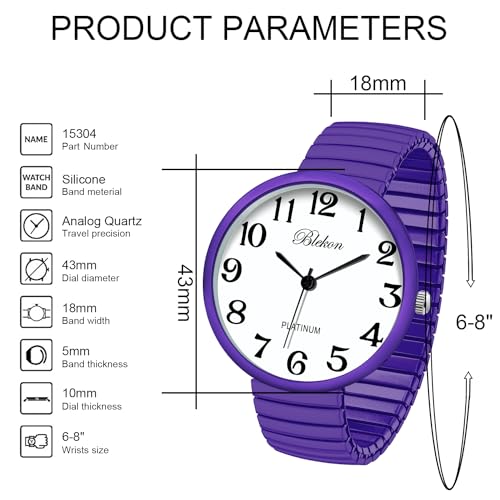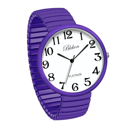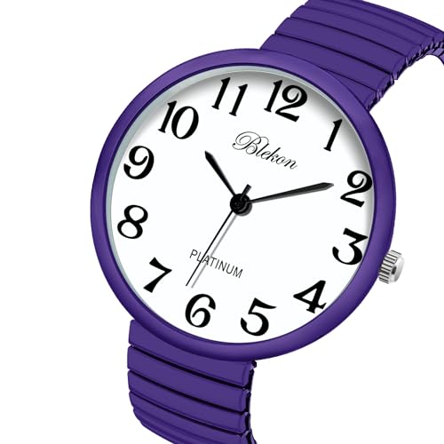 - Blekon Collections New Super Large Face Stretch Band Japanese Movement PC21J Fashion Watch (Lavender) offers reliable performance and quality- This watch was made out of an alloy case, large metal stretch band, glass dial, and analog display. Fixed bezel with a push/pull crown for it to start/stop. It cant be put in water, if put in water watch might stop working