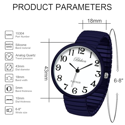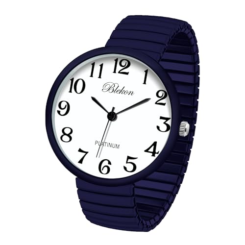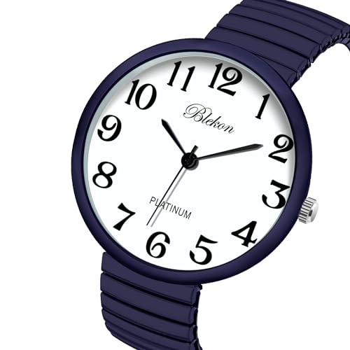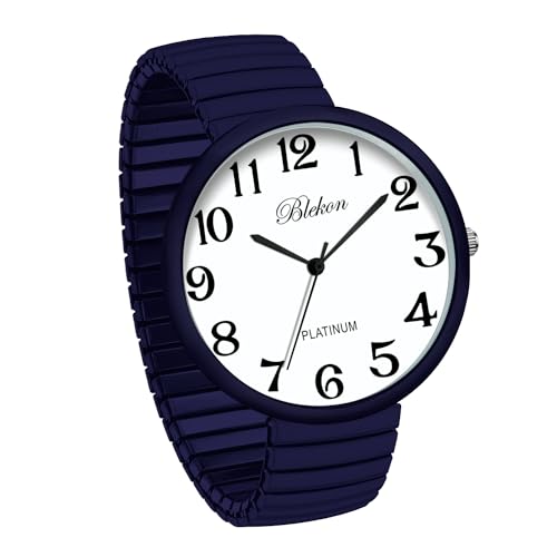 - Blekon Collections New Super Large Face Stretch Band Japanese Movement PC21J Fashion Watch (Navy-Blue) offers reliable performance and quality- This watch was made out of an alloy case, large metal stretch band, glass dial, and analog display. Fixed bezel with a push/pull crown for it to start/stop. It cant be put in water, if put in water watch might stop working