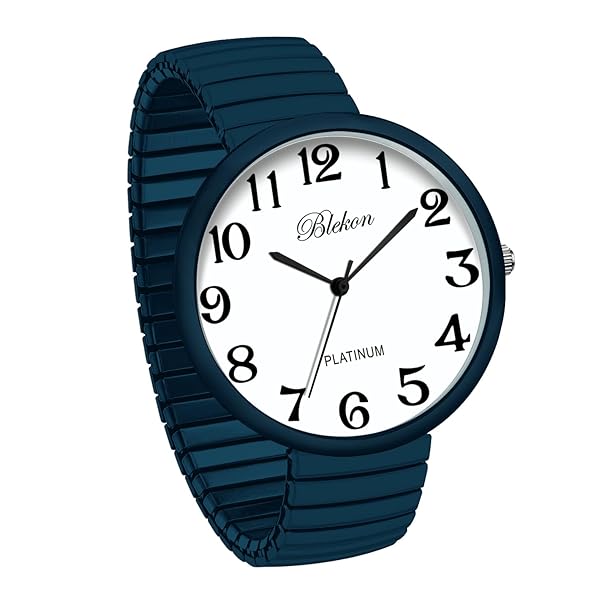 * Blekon Collections New Super Large Face Stretch Band Japanese Movement PC21J Fashion Watch (Teal): this watch was made out of an alloy case * Large metal stretch band * Glass dial * And analog display * Fixed bezel with a push/pull crown for it to start/stop