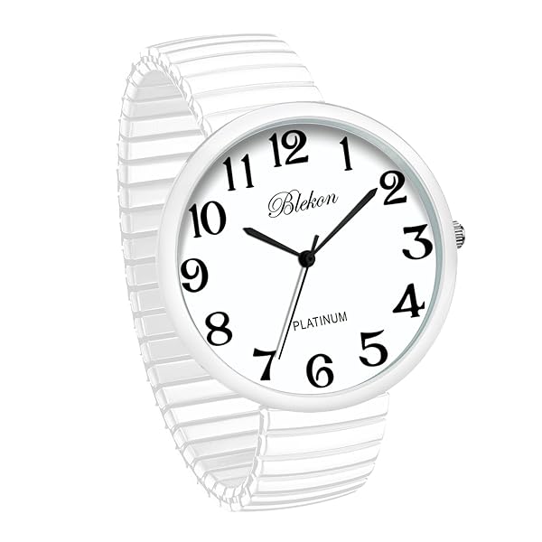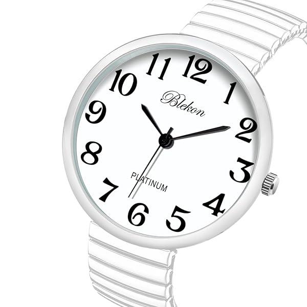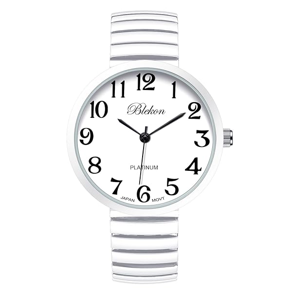 - Blekon Collections New Super Large Face Stretch Band Japanese Movement PC21J Fashion Watch (White) offers reliable performance and quality- This watch was made out of an alloy case, large metal stretch band, glass dial, and analog display. Fixed bezel with a push/pull crown for it to start/stop. It cant be put in water, if put in water watch might stop working