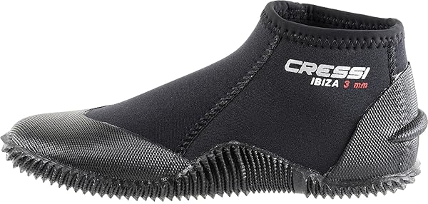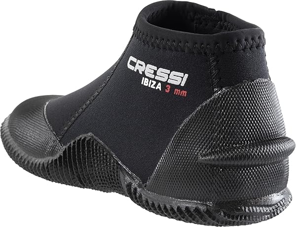 - Cressi Ibiza 3 mm, Black/Black, 3 mm, 9 offers reliable performance and quality- The Ibiza 3mm are lightweight boots ideal for outdoor sports and travel- Made with Super Elastic Neoprene for best comfort within the sole, it is built to provide extra comfort, and is also ultra durable- The back of the heel has a special design that fits perfectly with open heel fins for scuba diving. The small boss is used to prevent the slipping of the fins strap