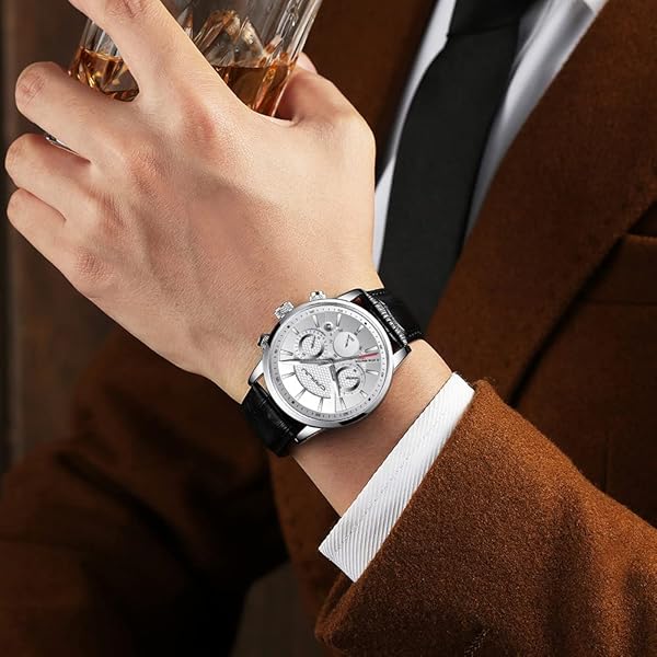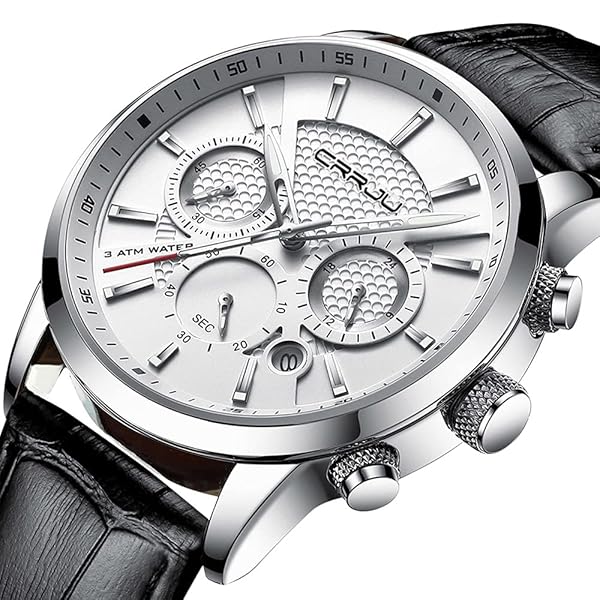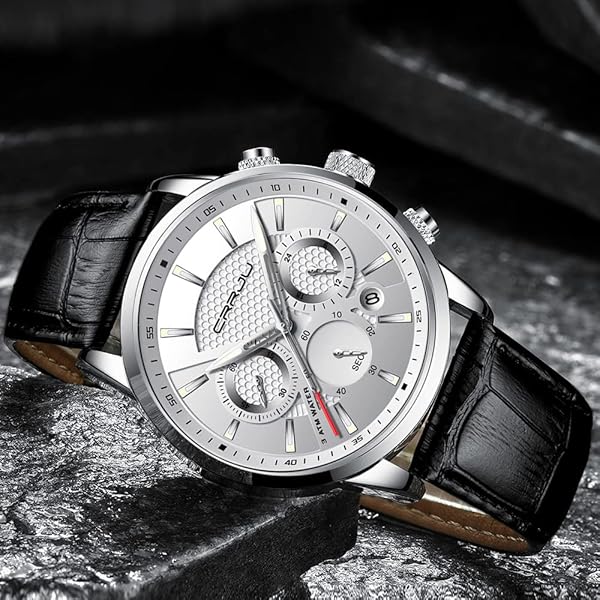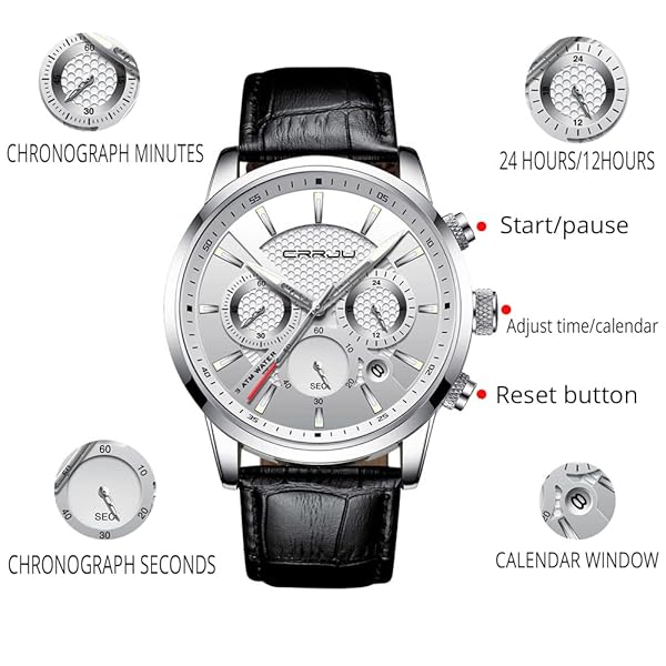 * CRRJU Watches for Mens Fashion Casual Chronograph Quartz Waterproof Black Leather Strap Men Wristwatch: unique elegant design: luminous pointer * Second,Minute and Hour Chronographs * Classic Date Window * LIGHTWEIGHT COMFORTABLE: Japan Movement and Battery provide accurate time keeping * Black Leather adjustable strap