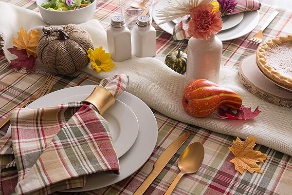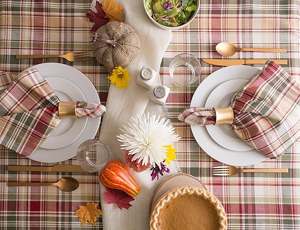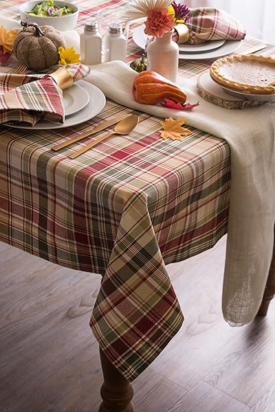 - DII Give Thanks Plaid Fall Table Decor, Autumn & Thanksgiving Tabletop Linens, 52x52 Square Tablecloth offers reliable performance and quality- SEATS 4 PEOPLE: Enjoy a quality tablecloth measuring 52x52", made of 100% cotton with a 1" hem- EASY CARE: 100% cotton, machine wash on gentle cycle, tumble dry low, low iron if needed- ADDS A FINISHING TOUCH: Let your dinnerware stand out with our color fast wrinkle resistant tablecloths, sure to make a statement