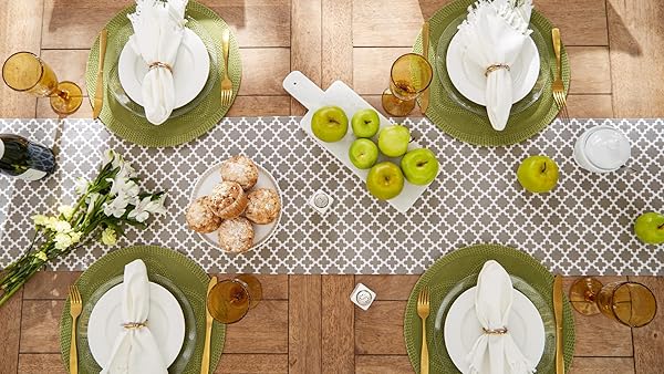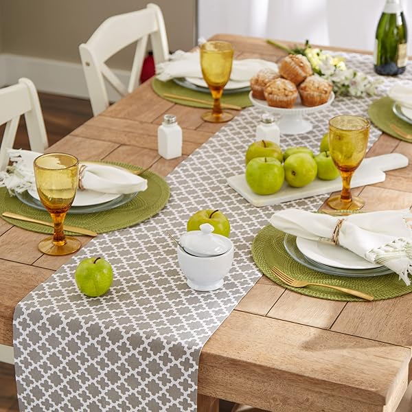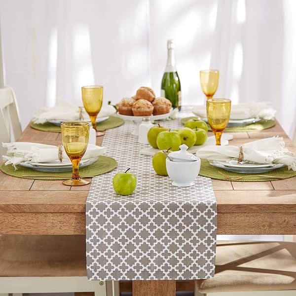 - DII Lattice Tabletop Collection, Table Runner, 14x72, Gray offers reliable performance and quality- FOR YOUR TABLE This printed table runner measures 14x72" in size, appropriate for a table that can seat 4-6 people- EASY CARE - 100% cotton, machine washable, gentle cycle, tumble dry low. Low iron if needed