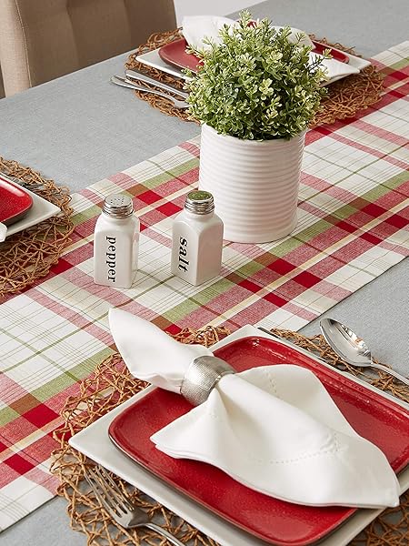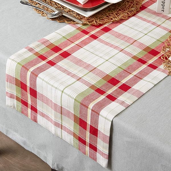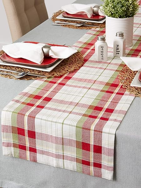 - DII Orchard Plaid Collection Linen Tabletop Essentials, Table Runner, 14x72, Taupe/Red offers reliable performance and quality- FOR YOUR HOLIDAY TABLE: This festive table runner measures 14x72" in size, appropriate for a table that can seat 4-6 people- CARE INSTRUCTIONS: 100% cotton, machine washable; Gentle cycle, tumble dry low; Low iron if needed