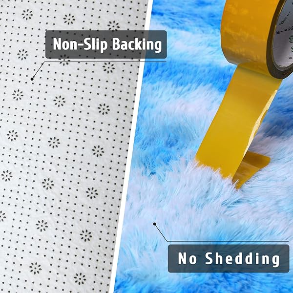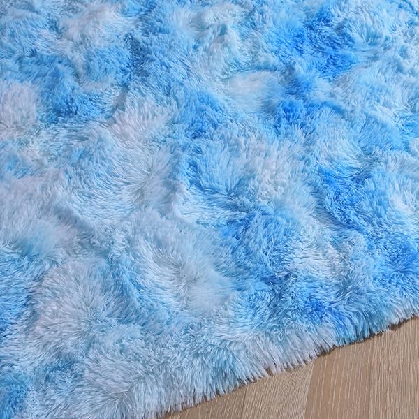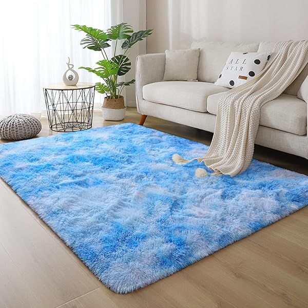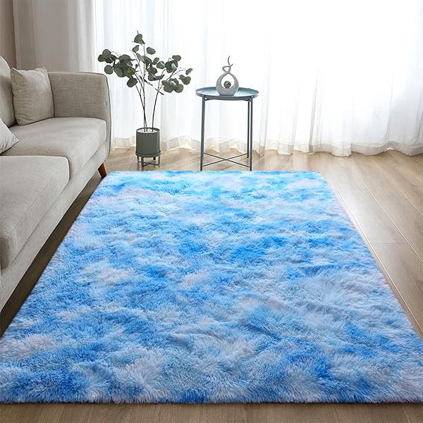 * DweIke Fluffy Blue Shag Rugs for Bedroom Living Room, 3x5 Feet Soft Plush Tie-Dyed Light SkyBlue Girls Boys Kids Rug, Upgraded Non-Slip and Machine Washable Carpet for Dorm Nursery Classroom Decor: new carpet color design: more comfortable * After investigating customers' preference for carpet colors * Our carpets have been improved and launched a more comfortable color series * According to the results of most people's choices * The improved carpet color provides people with a warmer and more