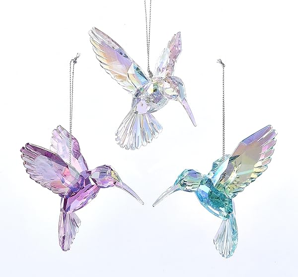 - Kurt Adler T2031 3 Assorted Acrylic Iridescent Purple, Blue and Clear Hummingbird Christmas Ornaments offers reliable performance and quality- Set of 3 iridescent hummingbirds in blue, purple, and clear- Great on tree, as a suncatcher, for everyday, or as a gift- Each hummingbird measures approximately 2.75" H x 4.25" W- Ornaments are 3 dimensional