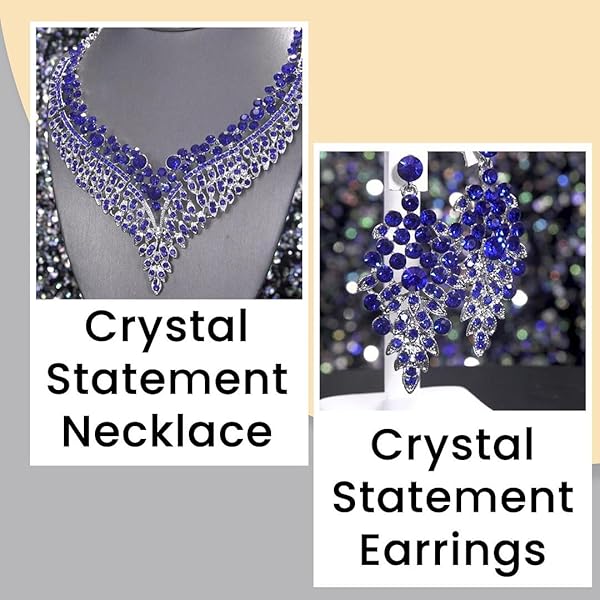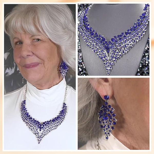 - SHOP LC DELIVERING JOY Wedding Costume Jewelry Set for Women Bridal Earrings Bib Necklace Blue Crystal Statement Bride Women 20" Ct 49.2 Boho Western Birthday Christmas Gifts for Her - Blue offers reliable performance and quality