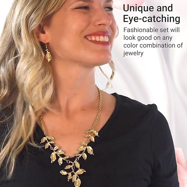 - SHOP LC DELIVERING JOY ION Plated Yellow Gold Necklace Set - Gold Leaf Necklace and Earrings Set - Floral Costume Jewelry for Women Valentines Day Birthday Christmas Gifts for Women - 20 Inches offers reliable performance and quality