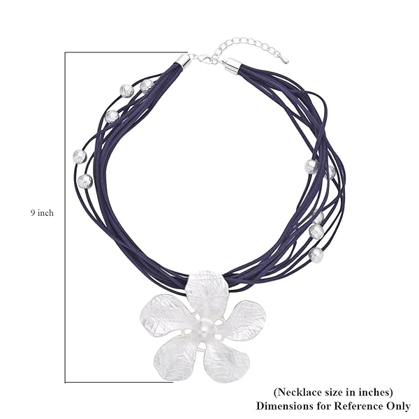 "Shop LC Multi Strand Faux Leather Jasmine Flower Necklace - Perfect Christmas Gift for Women, 18-20" Navy & Platinum Plated Jewelry"