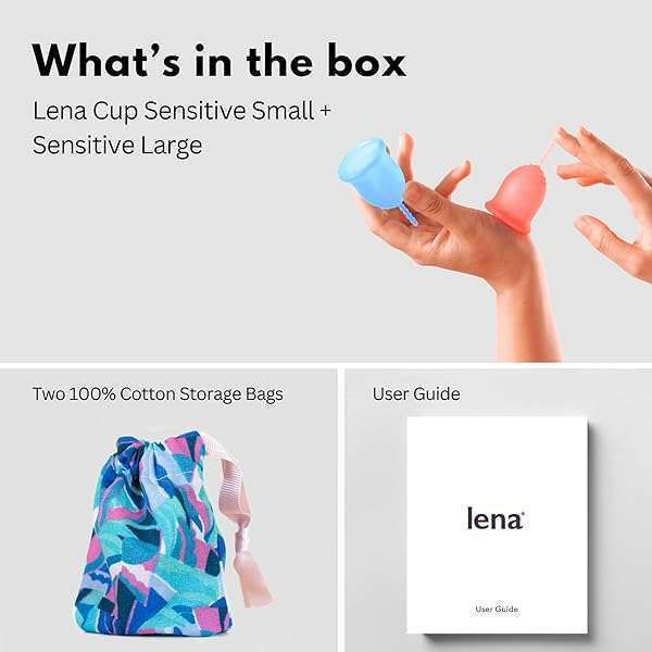 - Lena Sensitive Menstrual Cup 2 Pack Small & Large Reusable Period Cups Soft, BPA-Free, Medical-Grade Silicone Menstrual Cup Set for Beginners, Teens & Heavy Flow (Up to 12 Hours) provides reliabl...- Complete Sizing Solution The Lena Sensitive Menstrual Cup 2 Pack includes both small and large menstrual cups, ideal for beginners, teens, and heavy flow users.