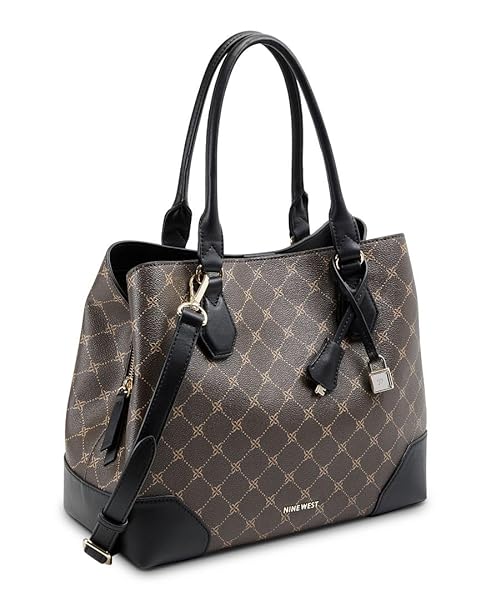 Shop NINE WEST Brooklyn Jet Set Carryall Satchel - Stylish Brown/Black Bag for Women