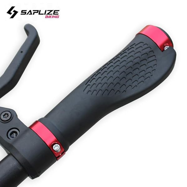 Shop SAPLIZE Ergonomic Bike Handlebar Grips PR11 - Black & Red with Aluminium End Caps for Ultimate Comfort
