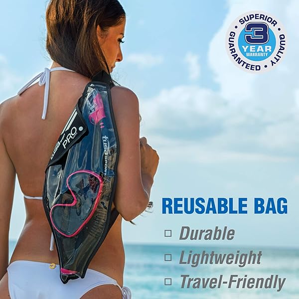 TUSA Sport Adult Serene Mask and Snorkel Combo, Black/Hot Pink,UC-1625PQB-HP