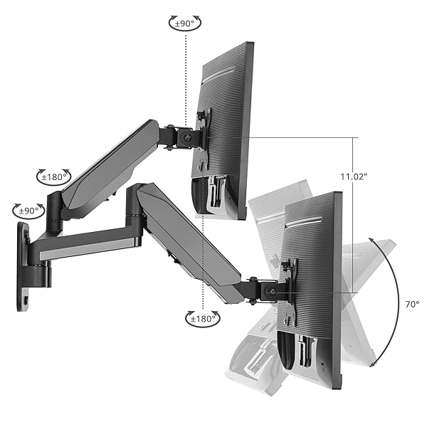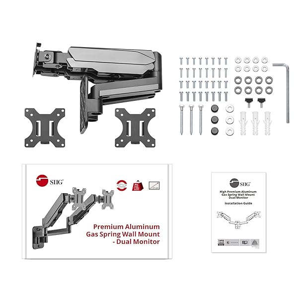 - SIIG Dual Arm Monitor Wall Mount for 17" to 32" Screens, Up to 17.6lbs per Monitor, Heavy Duty Aluminum Gas Spring with Rotation, Tilt, Swivel, VESA 75x75 or 100x100 (CE-MT2M12-S1) offers reliable performance and quality- ERGONOMIC WALL MOUNT: Declutter and clear up your desk space with this Dual Arm Wall Mount. Easily adjust the arm sto ensure perfect positioning and prevent from eye, neck and back strain