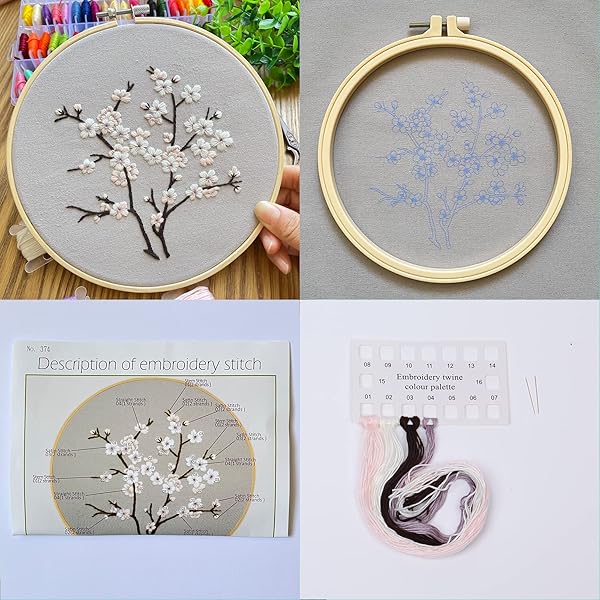 * Silentsea 3 Sets of Starter Kits for Embroidery Beginners, Including 3* Embroidery Cloth with Patterns, Hoop, Needle, Manual and Other Manual DIY Tools Needed for Embroidery: 3 sets of embroidery kits for beginners * Floral patterns * Package Contents: * Embroidery cloth*3 * Embroidery thread*3