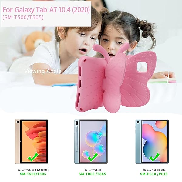 * Simicoo Samsung Tab A7 10.4 Kids case T500 Cute Butterfly with Stand for Kid Girl Light Weight EVA Rugged Shockproof Heavy Duty Friendly Full Cover (Pink),: this item compatible with model: for samsung galaxy tab a7 10.4 inch model (sm-t500/t505/t507) 2020 release * The model is on the back of your Tablet.Please confirm the model of your Ipad before purchasing * Material: Made with durable heavy duty EVA foam * Light weight * Wear-resistant