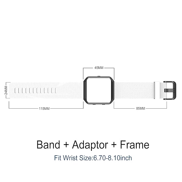 - Simpeak Sport Band Compatible with Fitbit Blaze Smartwatch Sport Fitness, Silicone Wrist Band with Meatl Frame Replacement for Fitbit Blaze Men Women, Large, White Band+Black Frame provides reliabl...- 1. Compatible with Fitbit Blaze Watch Only --- Large Size: 6.7- 8.1 inch , Small Size: 5.5-6.7 inch, Width:24mm, with well assembled watch band and Metal Frame.