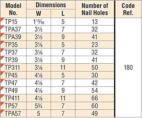 * Simpson Strong-Tie Tie Plate 5" L X 1-13/16"W 20 Ga: simpson strong-tie tie plate 5" l x 1-13/16"w 20 ga * A versatile and easy-to-use tie plate for splicing and miscellaneous wood-to-wood connections * Ideal for reinforcing wood-to-wood connections on flat members * Staggered nail pattern for a secure connection that resists splitting * Width: 1-13/16 in