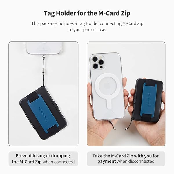 * Sinjimoru for MagSafe Wallet, Secure Hard Lock Magnetic Card Holder as a MagSafe Stand and MagSafe Grip for iPhone 16 15 14 13 12. M-Card Zip Blue: wide compatibility: compatible with magsafe cell phones and cases * Not compatible without MagSafe * When detaching the wallet * Push it sideways * Do not pull the grip strap directly
