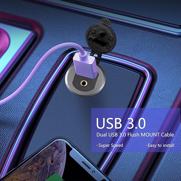 - SinLoon USB 3.0 & 3.5mm Car Mount Flush Cable 3.3FT USB 3.0 Flush Mount Cable AUX Extension Dash Panel Waterproof Mount Cable for Car, Boat, Motorcycle offers reliable performance and quality- SuperSpeed data transfer rate at up to5 Gbps, 10x faster than USB 2.0, the superspeed transfer rate need to connect with USB 3.0 port. but it also backward compatible with USB 2.0, 1.1 and 1.0 .USB Male to Female Socket promise high speed data transfer or power and fast charging