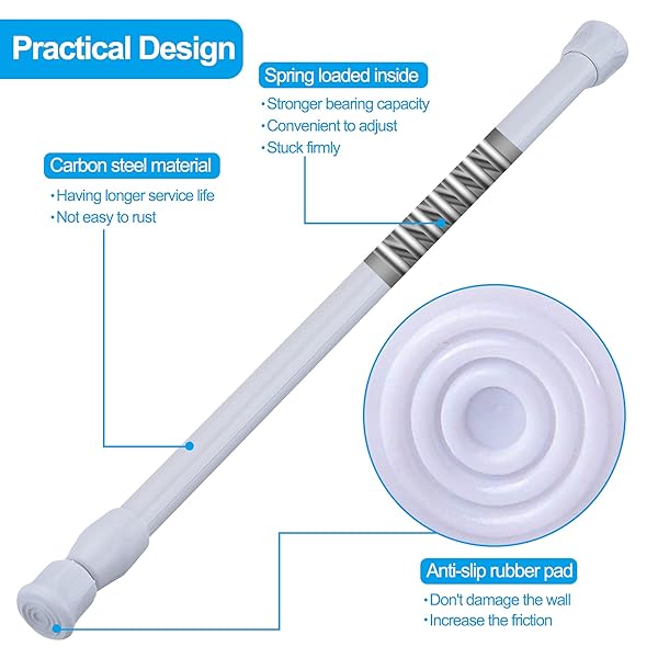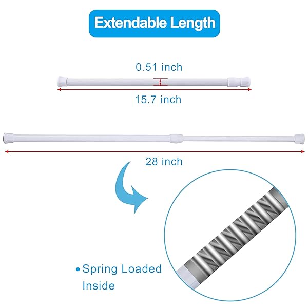 - SIQUK 6 Pack Cupboard Bars Adjustable Spring Tension Rods White Refrigerator Bar Extendable Rod for DIY Projects, 15.7 to 28 Inches offers reliable performance and quality- Extendable length - twist the rod to adjust the length from 15.7" to 28" according to the length of your cupboard, closet, refrigerator or other place where need bars- Spring action - the tension rod with spring loaded inside, convenient to adjust the length and stuck it firmly