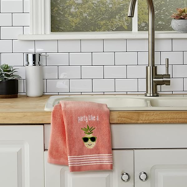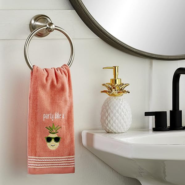 - SKL HOME by Saturday Knight Ltd. Party Pineapple 2 Pc Hand Towel Set, Coral Pink offers reliable performance and quality- 2-piece hand towel set- Embroidered soft velour- Soft, luxurious cotton is absorbent and soft on bare hands- Made of 100% Cotton