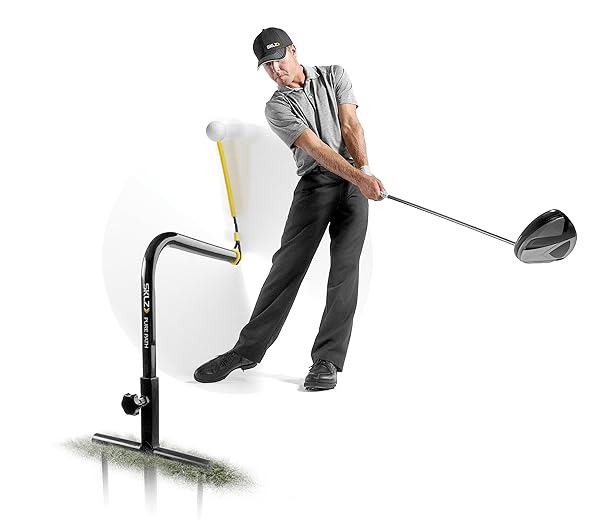 - SKLZ Pure Path Golf Swing Trainer Yellow, Large offers reliable performance and quality- Helps correct pushes, pulls, slices and hooks- Gives immediate feedback on swing path- Sets up quickly and easily stakes into the ground to eliminate the need for a practice net- Ball material delivers durability and true feel of contact