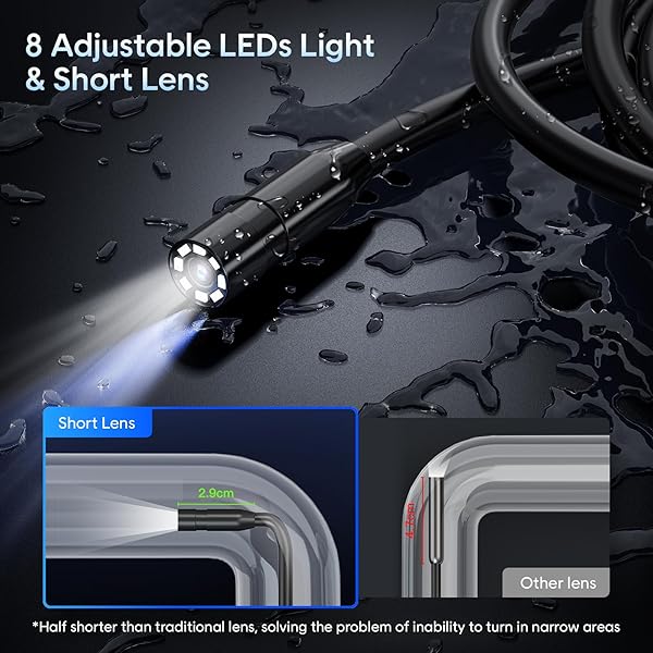 - Endoscope with Light and 16.4ft Semi-Rigid Cable, Handheld Borescope 4.3'' HD 1080P, 8 Adjustable LED Lights, IP67 Waterproof Inspection Camera for Sewer, Gadgets for Men (Single 5m) with reliable performance and quality- Advanced 4.3'' IPS Screen: SKYEAR 16.4ft Semi-Rigid Cable Endoscope Camera with Light adopts 4.3''IPS Screen with 8mm Inspection Camera. Industy-Leading 2MP camera 1080P CMOS sensor to provide you with absolutely realistic visual effects, which 1920*1080P high-de