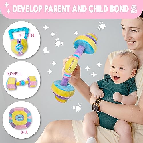 Skywin Baby Weights Plush Toy Set Cute Baby Dumbbell, Kettlebell, Barbell, and Medicine Ball, Toys for Infants, Christmas Gift, Birthday Surprise,