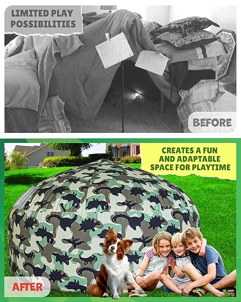 * Skywin Camo Jurassic Fort Air Tent for Kids (77 x 50) Builds in 30 Sec, Toddler Tents Indoor for Imaginative Play, Kids Forts Indoor Playhouse,Perfect Christmas or Birthday Gift (Fan Not Included): get ready for an expedition! the camo jurassic fort transforms any room into a prehistoric jungle base * Forget frustrating poles and complicated instructions * This innovative blow up tent for kids inflates in a lightning-fast 30 seconds * Simply attach a standard household box fan (not included) *