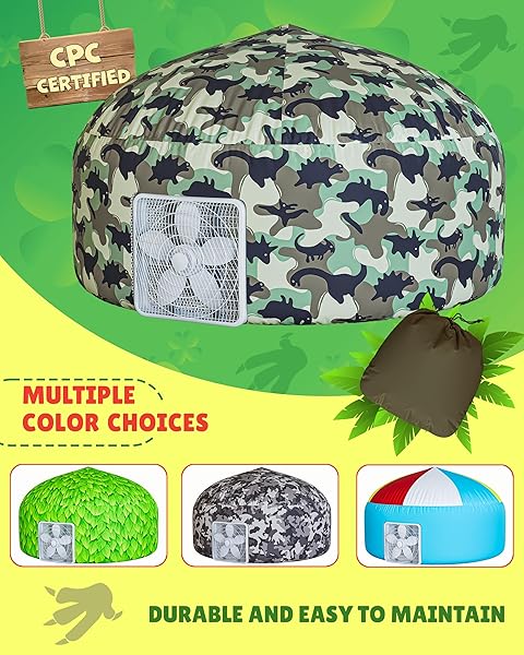 "Skywin Dino-Camo Air Tent Playhouse for Kids - Inflatable 63x40" Easy Setup & Storage"