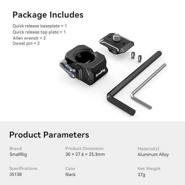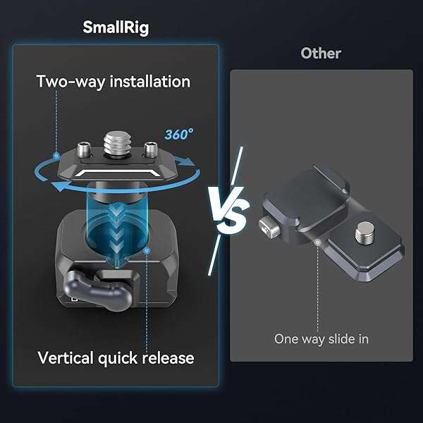 - SMALLRIG Quick Release Plate Drop-in HawkLock mini Quick Release Camera Mount Adapter with 1/4" Screw, for Camera Clamp, Super Clamp, Ball Head, Tripod, Magic Arm, Stabilizer, Field Monitor - 3513C...- Wide Compatibility: The quick release plate features a 1/4"-20 screw supports devices such as camera, monitor, cage, light, etc. And the quick release plate is reserved for 2 optional dowel pins, w...