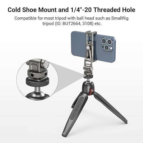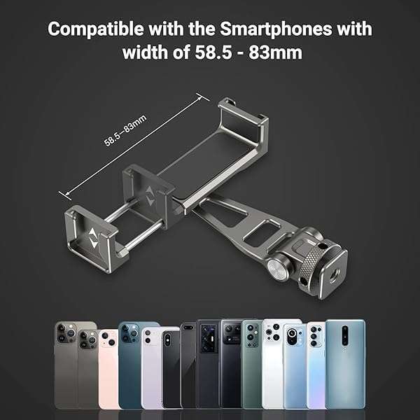 - SmallRig Multifunctional Universal Cell Phone Mount Adapter, Phone Tripod Mount with Cold Shoe, Phone Holder for iPhone 16 15 14 13 12 11, Fits for Tripod Monopod Phone Cage Camera cage-3559 provid...- Universal Smartphone HolderSmallRig Universal Metal Phone Holder 3559 is designed for smartphone users to achieve photography, live-streaming, vlogging, interviews, etc. with their smartphones.