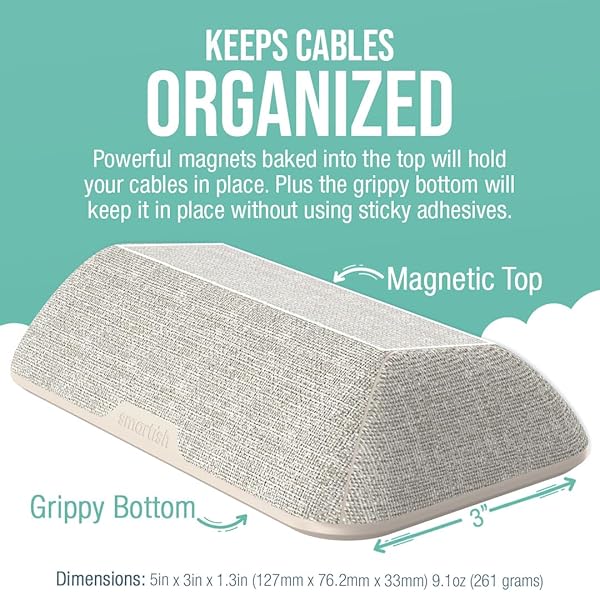 * Smartish Magnetic Cord Holder - Bigger Cable Wrangler Organizer with Magnet Clips for Charger Management on Desktop, Nightstand, or Side Table - Holds 6+ Cables - Lightly Toasted Beige: keep cables organized * Never drop a cable behind your nightstand again and say goodbye to the frustration of untangling knotted cables * Cable Wrangler by Smartish uses a magnetic system to keep your cables organized and within easy reach * Simply hold the cable near the top of the Wrangler * And the magnet