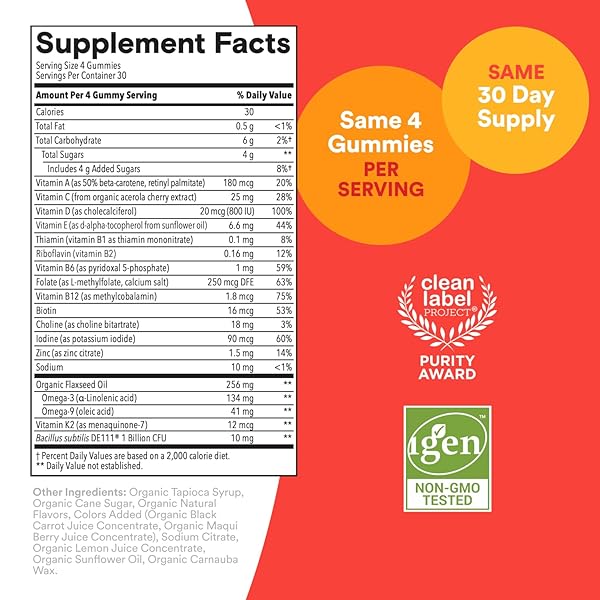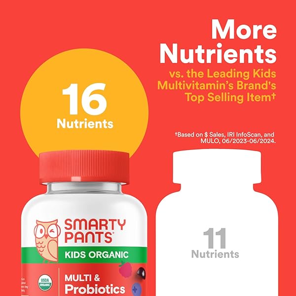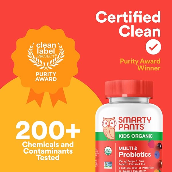 * SmartyPants Organic Kids Multivitamin Gummies: Probiotics, Omega 3 (ALA), Vitamin D3, C, Vitamin B12, B6, A, K & Zinc for Immune Support, Biotin, Three Fruit Flavors, 120 Count (30 Day Supply): smartypants organics kids complete is a vegetarian multifunctional dietary supplement formulated with parents in mind * We know getting your kids to eat healthy can be a chore * Thats why we carefully-select the most premium organic ingredients and pack them into one nutrient-dense and delicious gummy