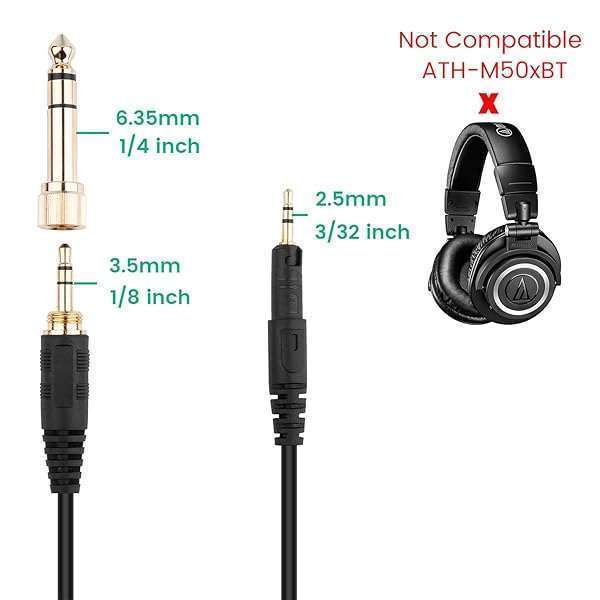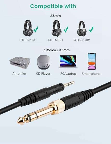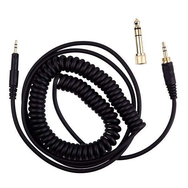 - Smays ATH-M50x Cable, Coiled AUX Cord Replacement for Audio-Technica ATH-M40x, ATH-M70x Headphone with 1/4 inch Adapter, 4ft to 10ft provides reliable performance and quality- 1/8" (3.5mm) and 1/4" (6.35mm) to 2.5mm male stretch AUX extension cords- Gold-plated connector ensure you get reliable and crisp sound- Spring audio cable is 4 feet (1.4 meter) - 10 feet (3 meters) long