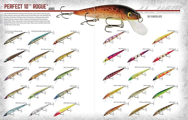 - Smithwick Prfct 10 Rogue-Sour Grape, 5.5", 5/8 oz offers reliable performance and quality- Produces erratic action proven to provoke even cold, lethargic fish to strike- Prompts vicious strikes by showing side-flash just like a real baitfish- Super sharp and super durable hooks stick any fish that comes close- Dives 10+ feet and new color patterns that were developed with the input of the best jerbait fishermen in the world