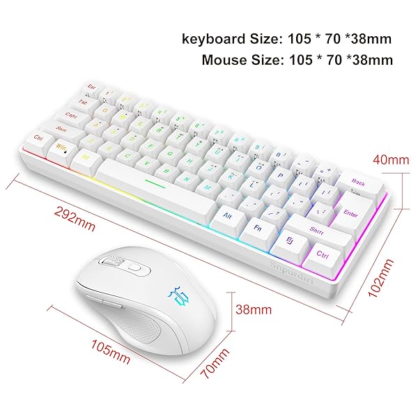 - Snpurdiri 2.4G Wireless Gaming Keyboard and Mouse Combo, Include Small 60% Merchanical Feel Ergonomic Design Mini Wireless Mouse(White) with reliable performance and quality- 2.4G Wireless Keyboard and Mouse The Snpurdiri wireless gaming keyboard delivers 2.4G high-speed and stable transmission, while its wireless gaming keyboard technology integrates advanced anti-interference capabilities, ensuring seamless connectivity up to 10 metersideal for intense FPS/MOBA battles.-