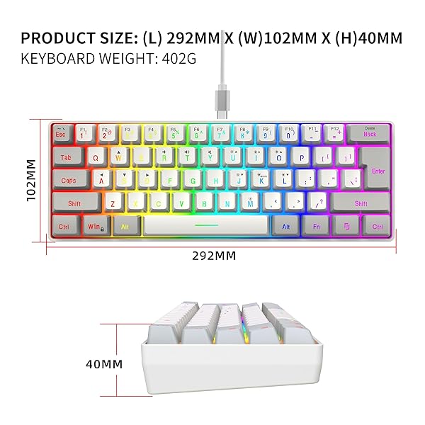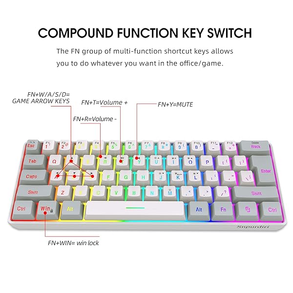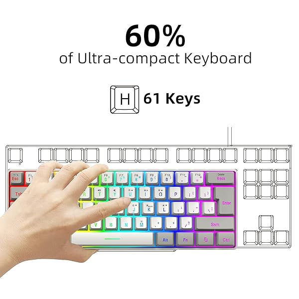 - Snpurdiri 60% Wired Gaming Keyboard, 61 Keys RGB Backlit Small Gaming Keyboard for PC/Mac Gamer, Typist, Travel, Easy to Carry on Business Trip(Grey-White) with reliable performance and quality- Classic 60% Compact Design This 60 percent gaming keyboard has a small size and it's good for all environnement, business travel games office home use, without Numpad, more practical for Gamers and Typist, give more space to your desktop- Ergonomic Design and Mechanical Feel The m