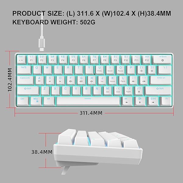 - Snpurdiri Portable 60% Mechanical Gaming Keyboard, Ice Blue LED Backlit 61 Keys Mini Wired Office Keyboard for Windows Laptop PC Mac (White,Red Switches) with reliable performance and quality- 60% small mechanical keyboard This classic 60 percent mechanical keyboard is ultra-compact. Its small size helps you save space for gaming or work. Its detachable USB-C cable makes it more convenient to carry- Mechanical Red Switches Red switch keyboard is popular with gamers and ty