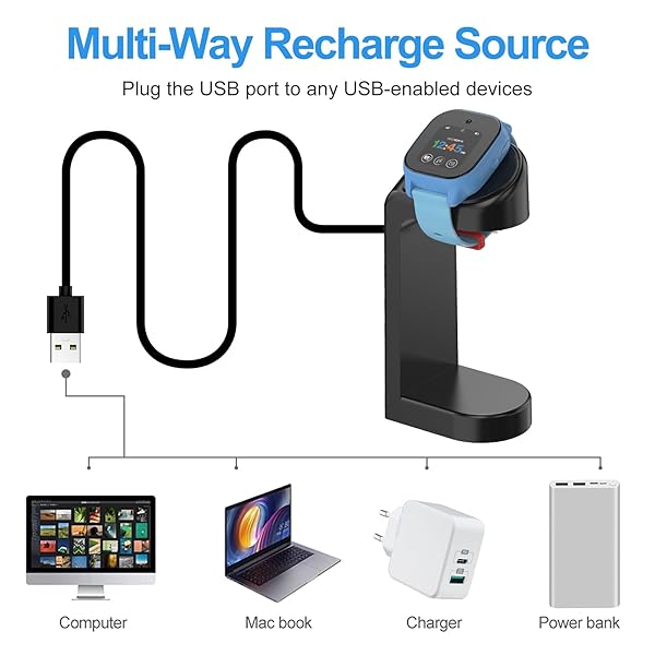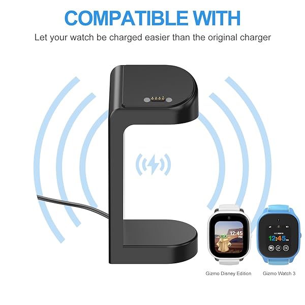 - Soarking Charging Stand Compatible with Gizmo Watch with 5 Feet Charger Cable (GizmoWatch Edition/Gizmowatch 3) with reliable performance and quality- Magnetic USB fast charging speed:It will take 70 minutes to full charged the Gizmowatch 3/edition.- Longer than OEM Cord:There is 5 feet cable attach on the item,The stock cable only 3.3 feet.- Charging at Portrait Orientation View:The gizmo watch dock are designes at portrait.When put the watch on the stand,We can loo