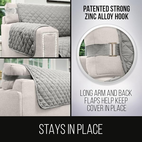 - Sofa Shield Armchair Slip Cover with Patented Strap, Cushion Protector, US Designed Reversible Stain and Dog Tear Resistant Slipcover, 23 inch Seat, Washable Covers for Dogs Pets, Light Gray Charcoal: reliable performance and quality- Protects from Stains and Messes: the Sofa Shield- Stay in Place Patented Strap Design: patented 2 inch- Stylish and Reversible Quilted Cover: our quilted- Generous Sizing for A Perfect Fit: thoughtfully